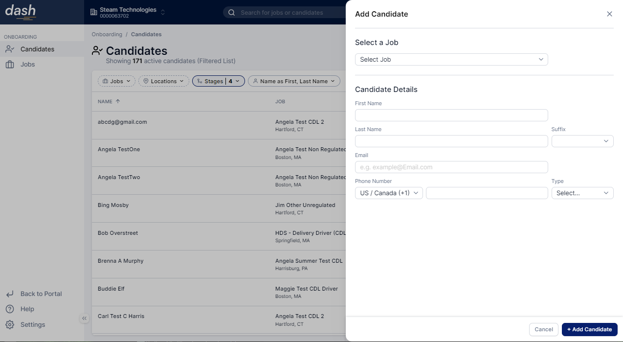 - Click +Add Candidate on the top right corner of the page