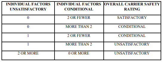From that point, the Overall Safety Rating the Motor Carrier is assigned is based on the following table.