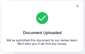 When uploaded documents go to DRS, we will let the user know with a toast card.