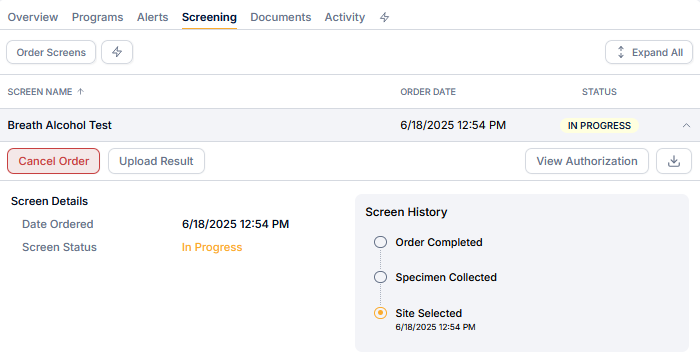 Breath alcohol test results don’t automatically feed into the Dash platform because they don’t go through a lab. When you order a Breath Alcohol Test (BAT) in Dash, you will see an upload option that will allow you to upload the result.