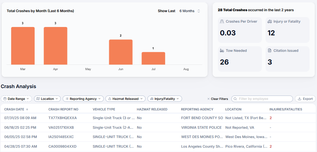 Dash | FMCSA Safety Insights Crash History